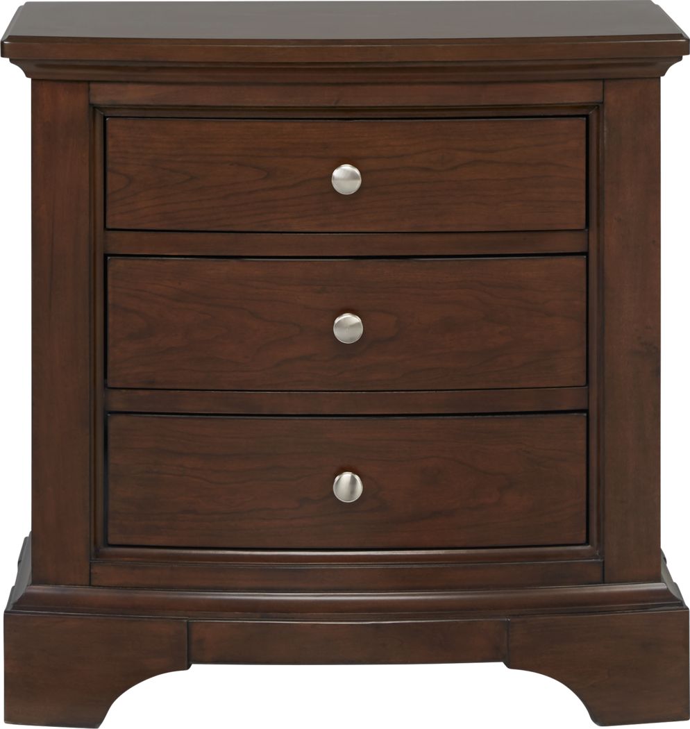 Cherry veneers in a dark subtly distressed finish soften the classically elegant look of this nightstand.